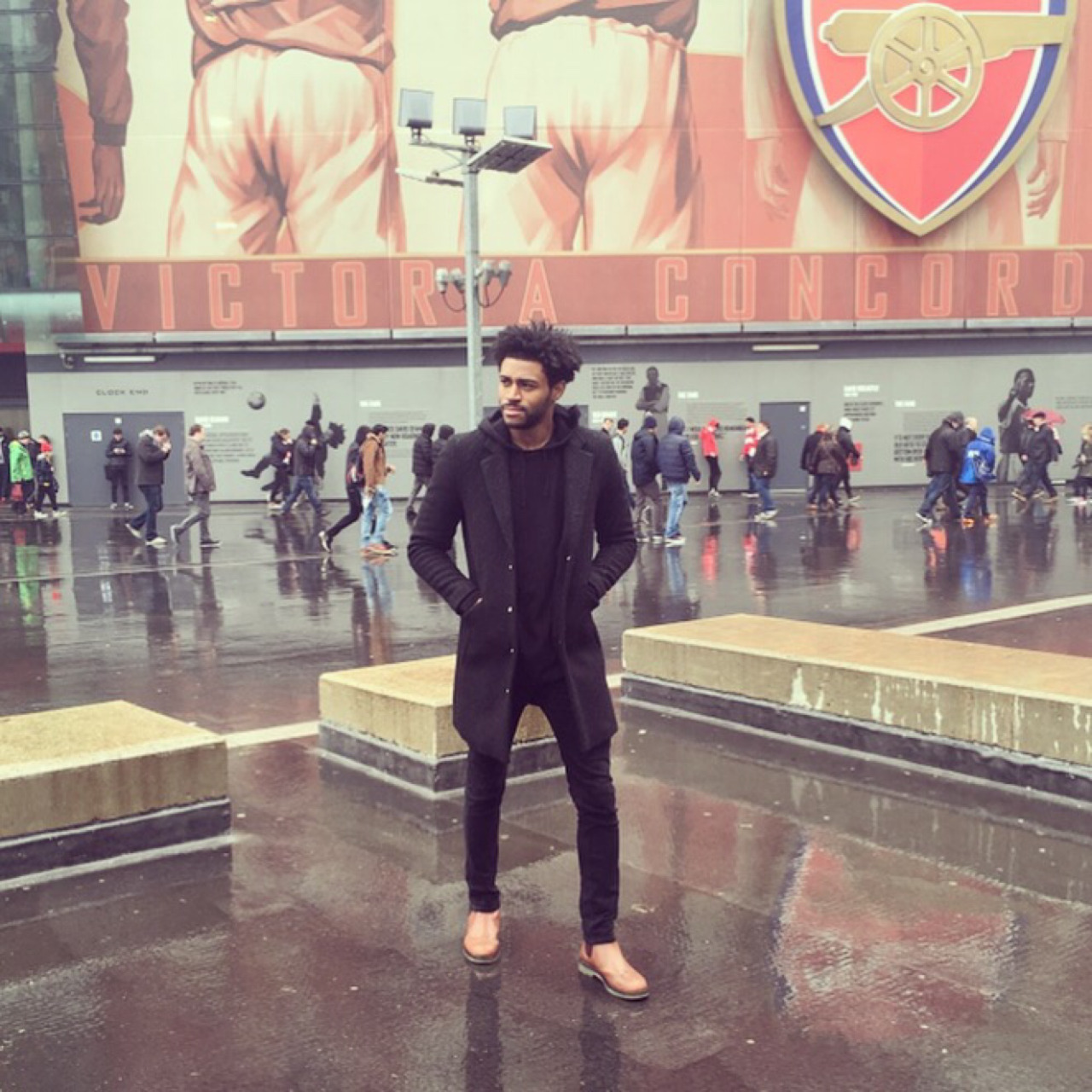 So, I stepped into 2016 like this. New Year - Same Me. Still black on black, still Harris Tweeding, still Chelsea booting. Stopped by my second home, The Emirates Stadium to see Arsenal collect 3 important points and couldn’t resist a photo with that iconic backdrop.